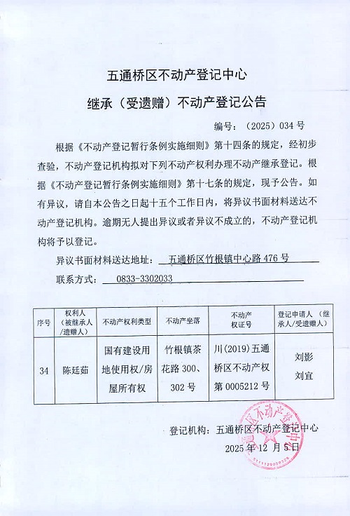 陈廷茹 继承公告