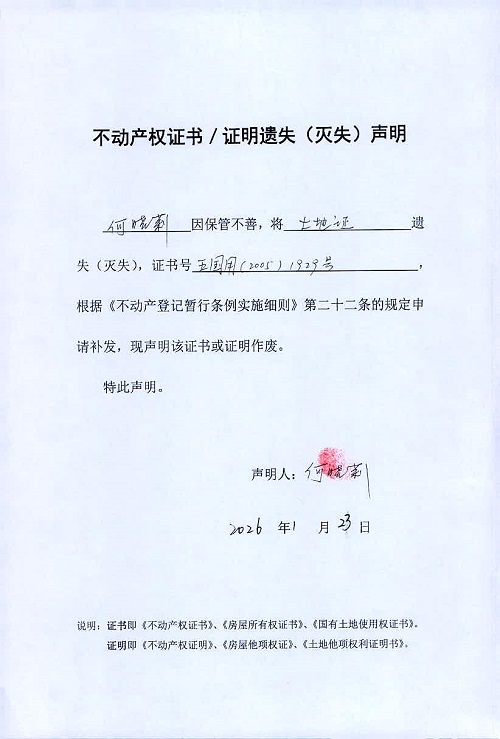 何晓莉 遗失声明