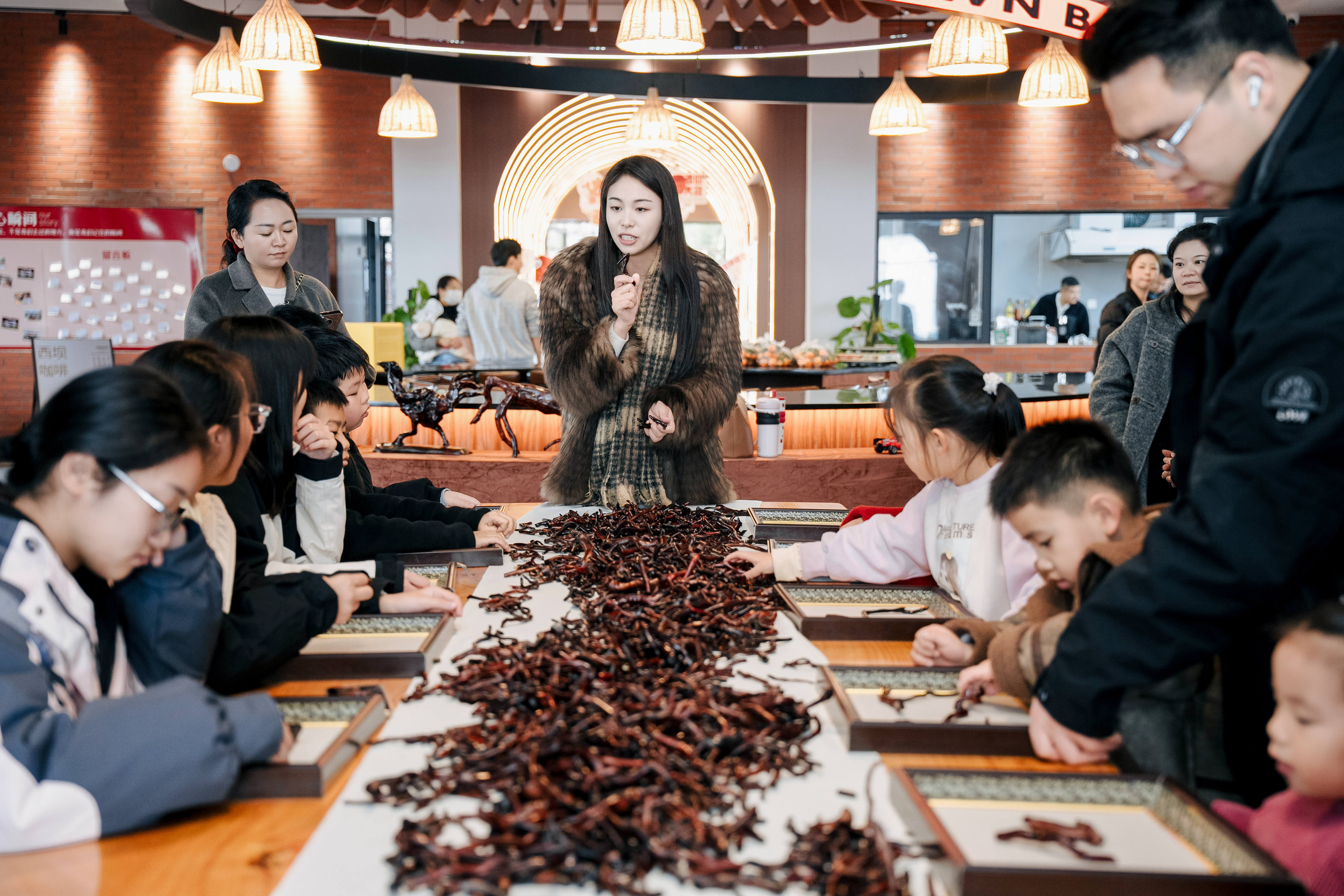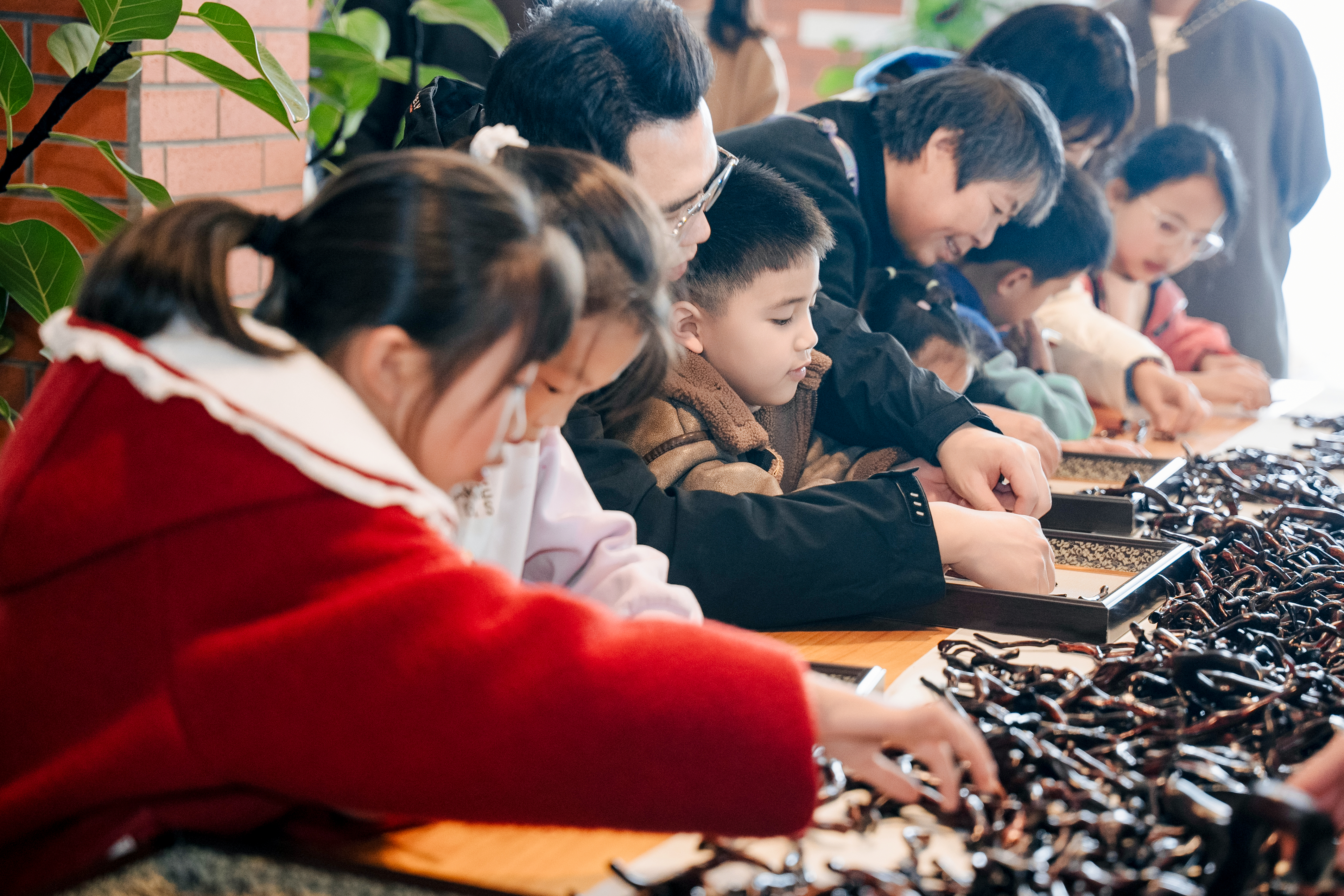 活动现场,根书艺术馆老师以生动有趣的方式向孩子们讲解根书艺术的起源与发展,并引导孩子们观察树根天然的纹理与书法笔画的巧妙融合,揭秘“化腐朽为神奇”的创作奥秘。在实践环节,孩子们在老师指导下,用精选的树根材料拼贴出各种汉字,将自然之“美”和人工之“巧”完美结合,让他们对中华汉字及书法有了深入浅出、可触可摸的理解。活动现场气氛热烈,引得在场游客驻足称赞。