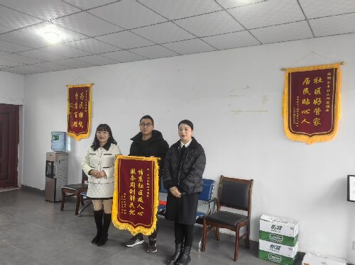 荣丰社区居民宋先生将一面印有“情系社区暖人心,服务周到解民忧”的锦旗送至社区党群服务中心,对我镇荣丰社区高效处置安全隐患、切实为民解忧的工作表示衷心感谢。