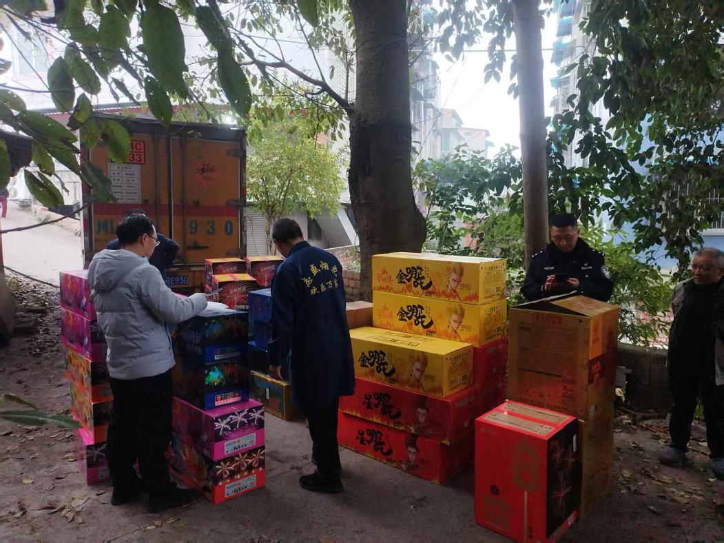 12月12日,一条群众举报线索直指牛华镇一居民房。执法人员火速开展突击检查,在一处无防爆、消防设施的砖木结构房屋内,当场查获100余箱非法烟花爆竹。“这处‘炸弹仓库’没有任何防爆、防火、防静电措施,周边全是居民楼,一旦出事后果不堪设想!”执法人员在现场指出。
