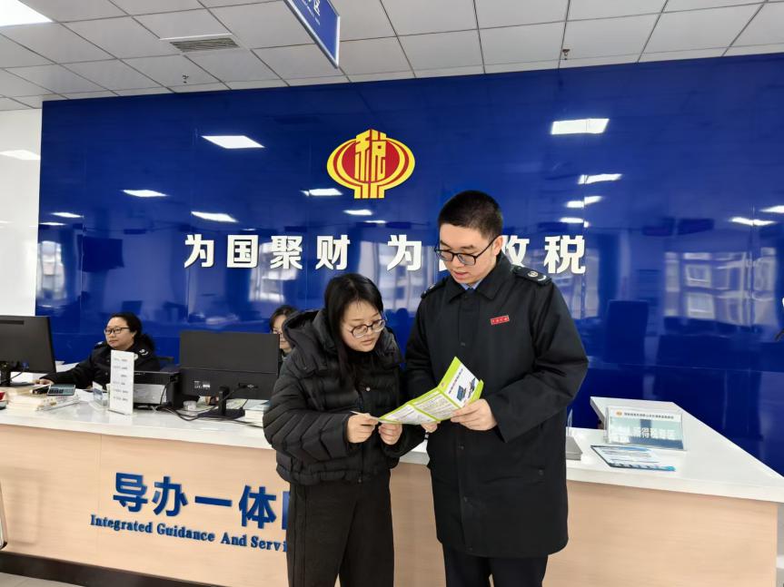 税务干部向纳税人讲解纳税缴费信用知识(摄影:赖雪珍)