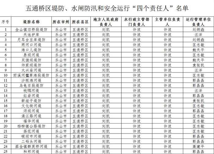 附件:五通桥区堤防、水闸防汛和安全运行“四个责任人”名单
