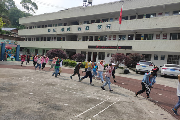 随着演练警报响起,各班班主任老师组织学生们在课桌下面就地避震。一分钟后随着长警报的响起,学生们用手或书保护着头部有秩序地从教室内迅速撤离。各岗位老师负责疏导、协调。整个演练过程中,全校师生按预先指定的疏散路线快速、有序、安全地撤离到了学校操场上空旷的地方。然后各班清点人数,汇报给本次演练的总指挥谭刚校长。整个过程井然有序,无一人发生跌倒摔伤事故,达到了预期的目的和效果。