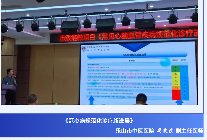 为了进一步完善及规范常见心脑血管疾病诊治流程,及时更新医护人员的诊疗理念,掌握最新的相关指南与技术,提升整体的救治水平,减少漏诊及误诊,降低并发症及病死率,更好保障患者安全,推动区域心脑血管疾病防治同质化及高质量发展。由我院主办了市级继续医学教育项目——“常见心脑血管疾病规范化诊疗进展”培训会,于2026年4月18日在五通桥区总工会多功能厅圆满落幕。